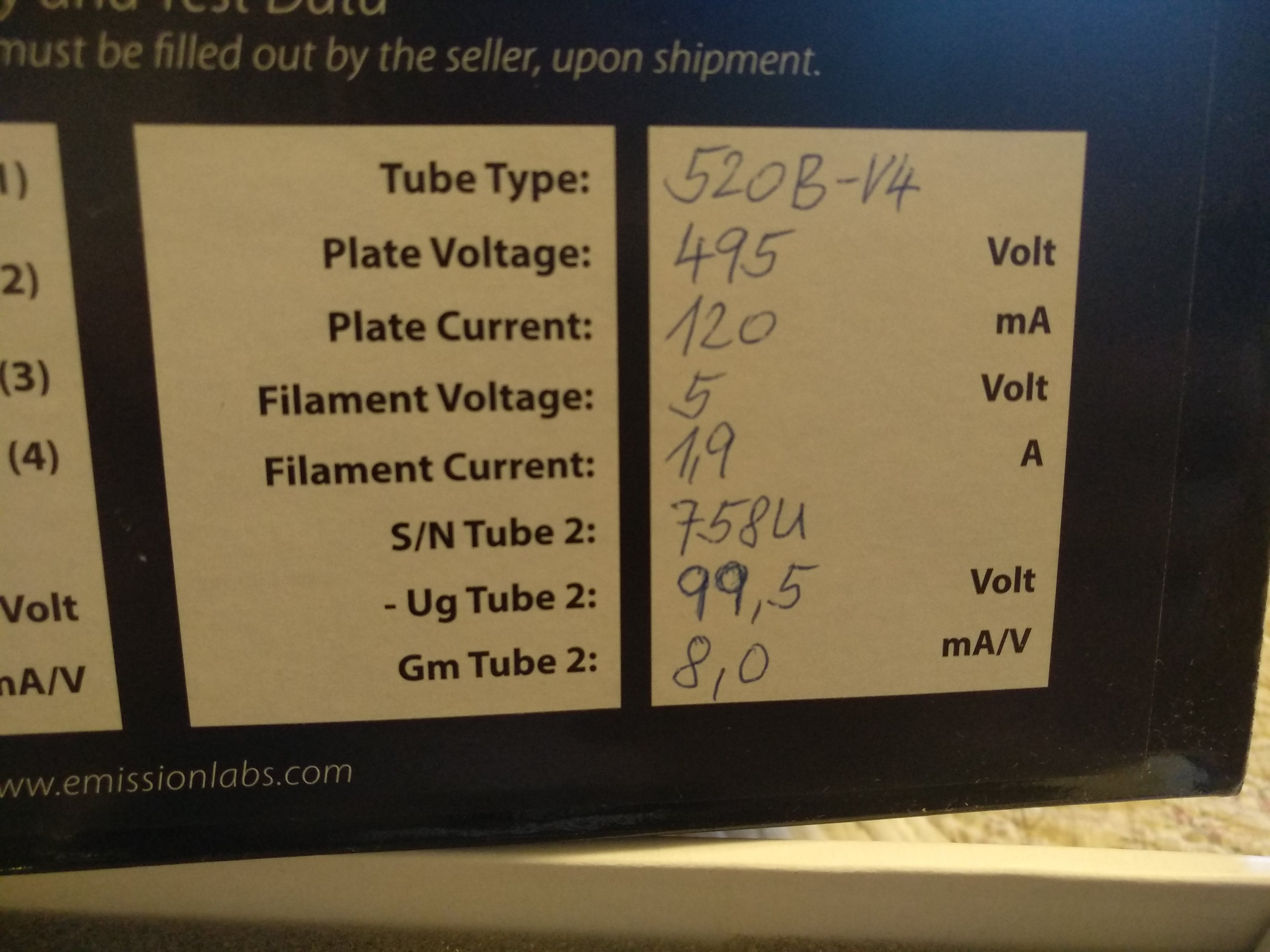 Выходная лампа - Emission Labs 520B.